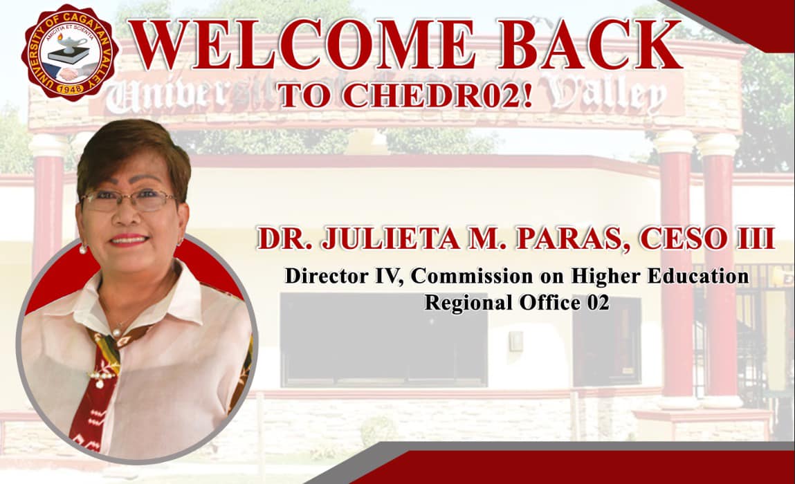 Welcome back to Cagayan Valley Region, Dr. Julieta M. Paras, Director of CHED RO2!