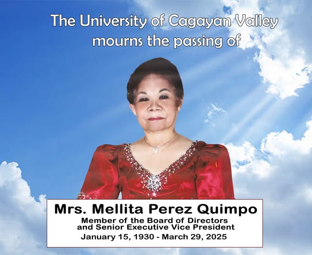 The University of Cagayan Valley mourns the passing of Mrs. Melita Perez Quimpo