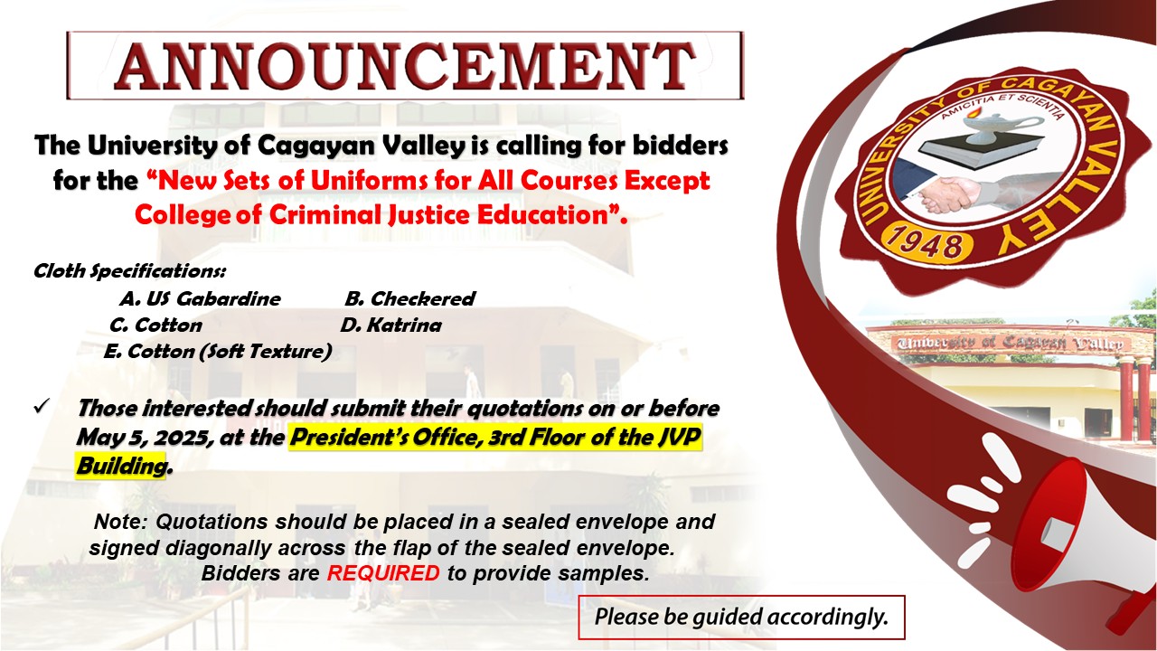 ANNOUNCEMENT FROM THE OFFICE OF THE UNIVERSITY PRESIDENT